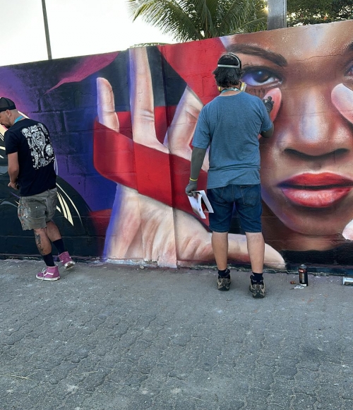Muralismo transforma muro do 32º BPM de Macaé em homenagem à força da mulher